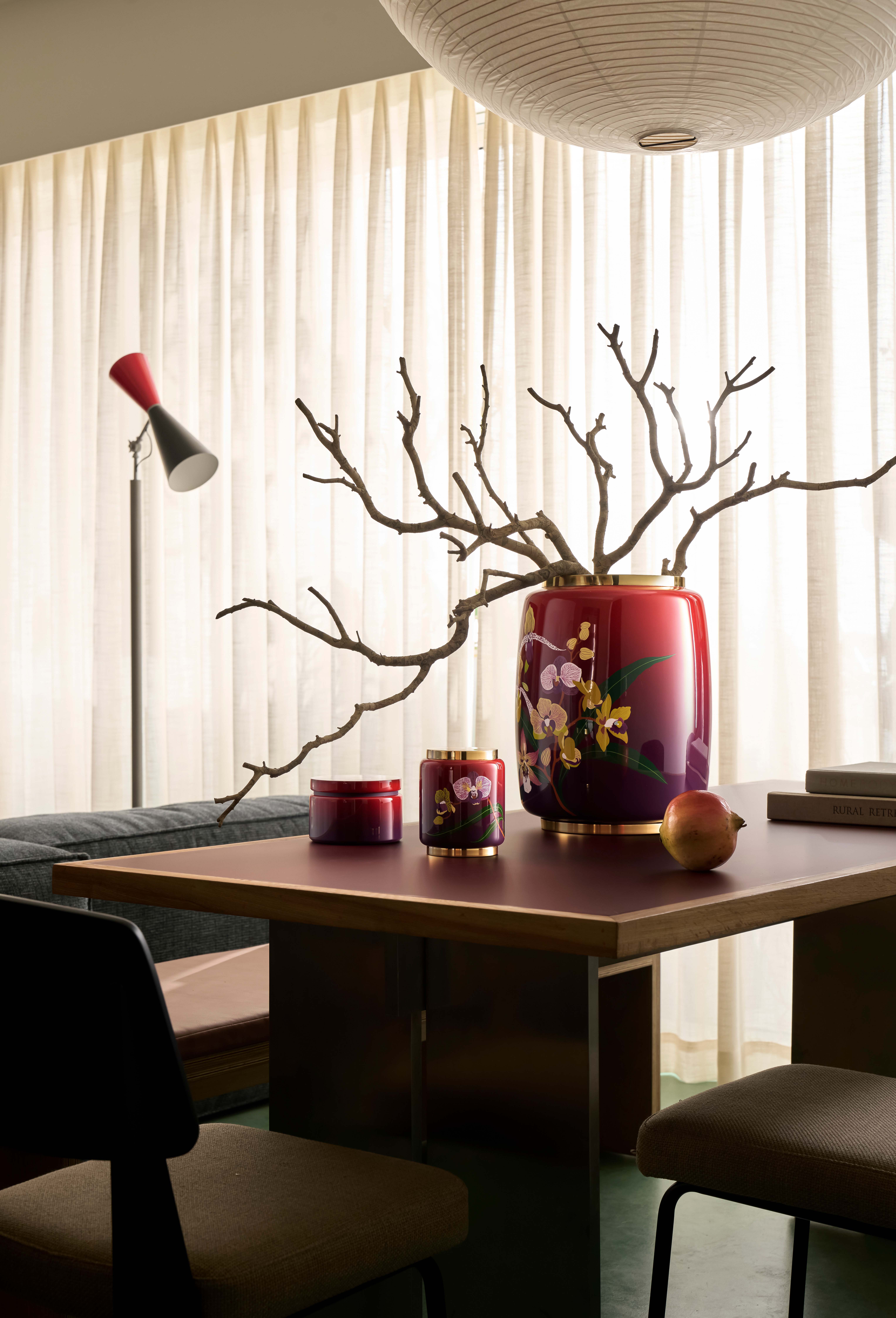 Hoa lan bung nở rực rỡ trên nền đỏ thẫm